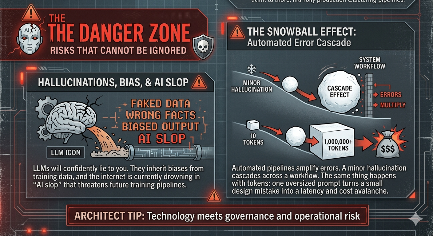 LLMs will confidently lie to you. They inherit biases from training data, and the internet is currently drowning in "AI slop" (low-quality synthetic garbage) that threatens future training pipelines.Real-World Scenario: A stark reminder of this risk occurred when a